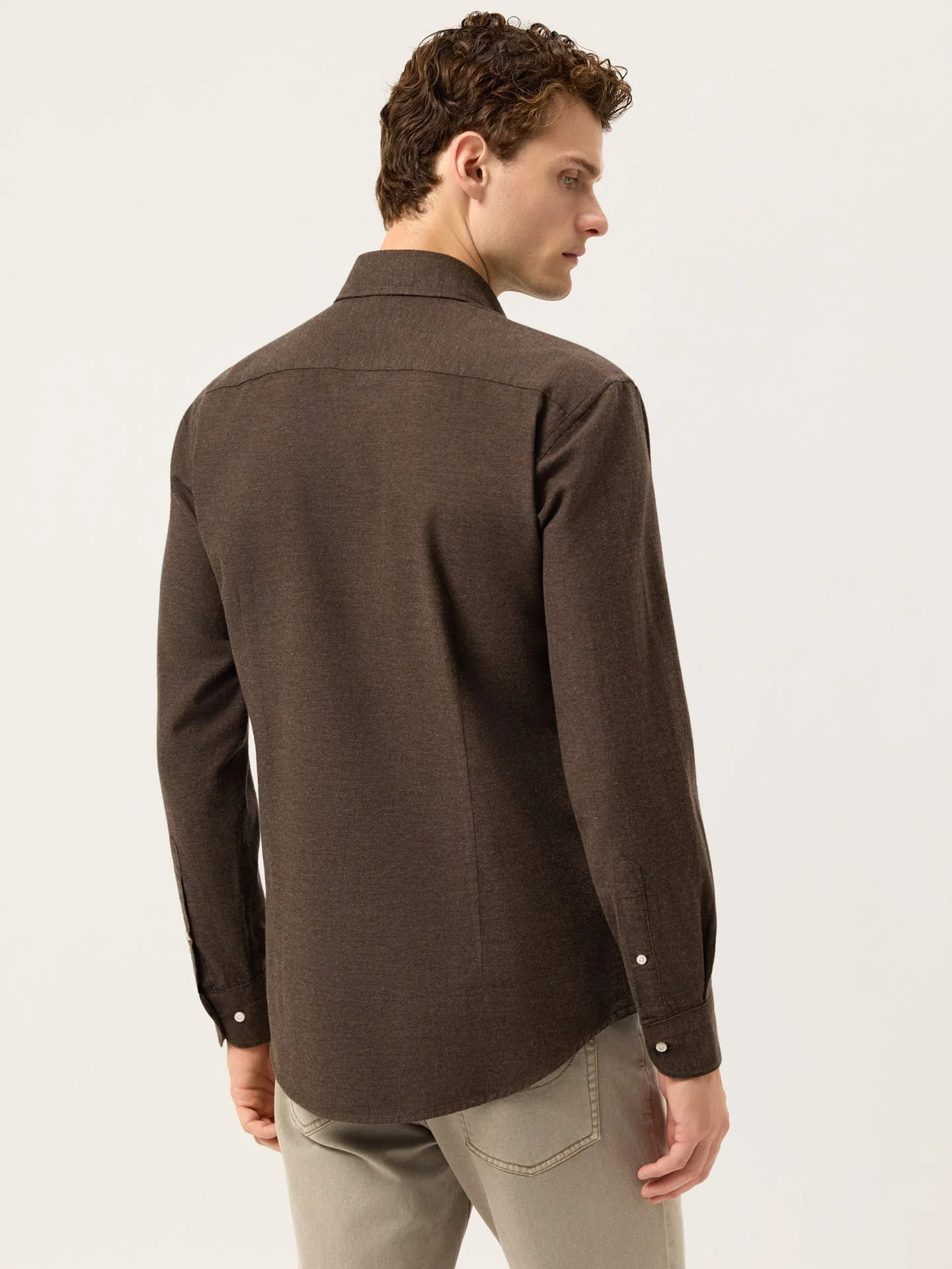 Camisa Slim Fit em Flanela de Algodão Suave com Colarinho Newport